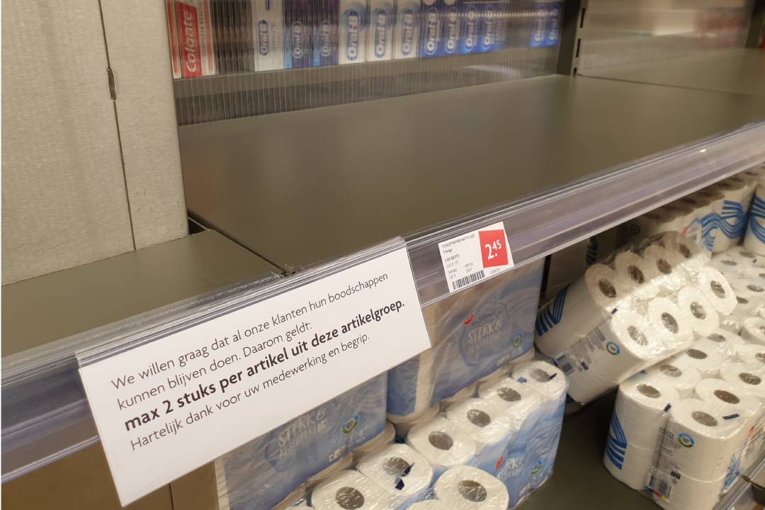 Paniek. Dat was de eerste reactie van grote merken en formules in coronatijd. En een enorme honger naar data. 'Mooie presentaties over shopgedrag in China.' Commercieel gaan de supermarkten er de oorlog niet mee winnen in coronatijd. Reclameman Guido Brouwer pleit dan ook voor een nieuwe 'commerciële grammatica'. Displays vreten ruimte in een 1,5-metereconomie. Impuls is daardoor kansloos. De Rotterdammer met het hart op de tong: 'Supermarkten moeten de oude logica van schapdenken weer terugkrijgen. Misschien moeten we het er wel weer inschoppen.'