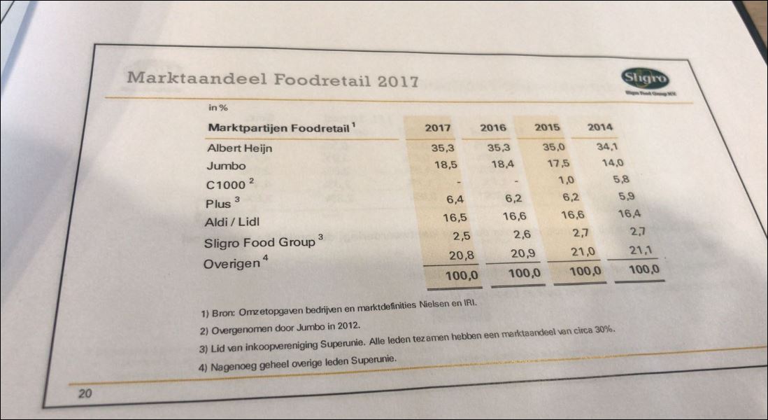 AMSTERDAM - Het marktaandeel van AH is stabiel gebleven op 35,3 procent. De discounters zijn 0,1 procentpunt gedaald in marktaandeel.