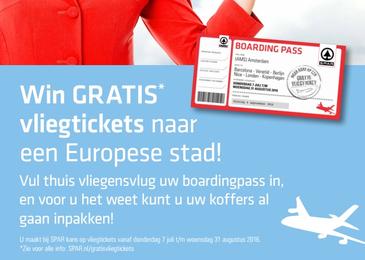 WAALWIJK - Spar gaat deze zomerperiode vliegtickets uitdelen aan klanten. In elke Spar-vestiging worden drie klanten verblijd met elk twee tickets voor een reis naar een Europese stad.