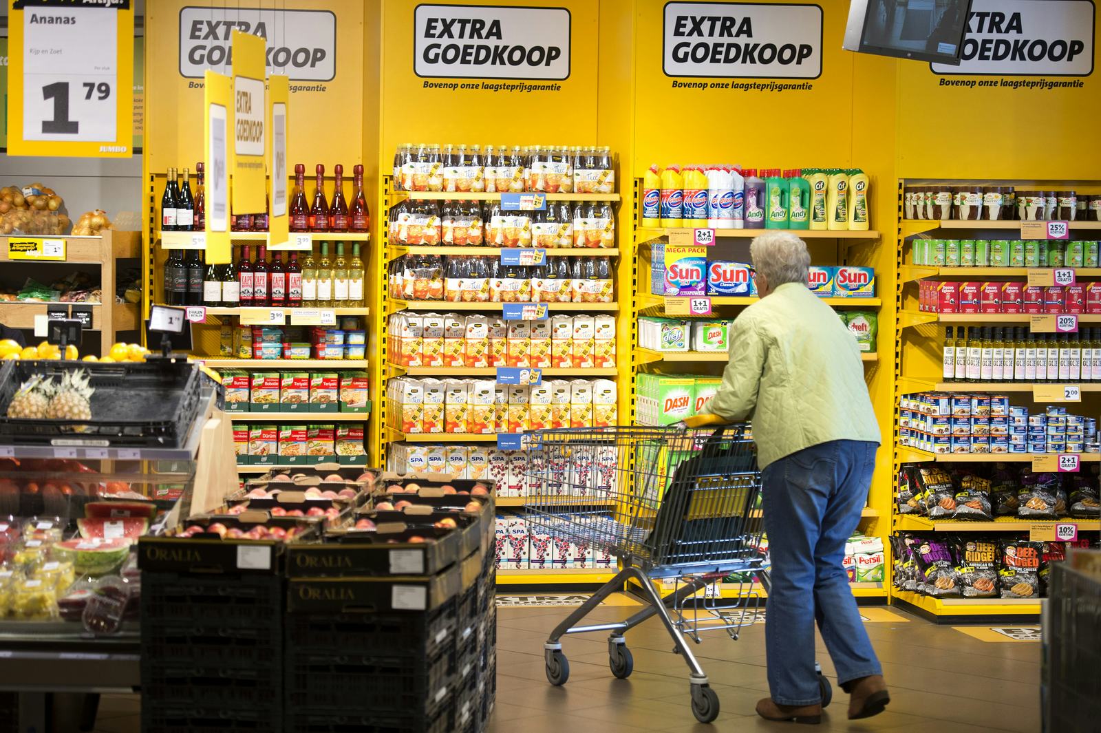 VEGHEL - Jumbo heeft naar eigen zeggen een uitstekend jaar achter de rug. De consumentenomzet van de formule groeide in 2014 met 26 procent tot €4.823 miljard. Uiteraard voor een belangrijk deel als gevolg van de ombouw van C1000. En waar de markt 0 procent groei realiseert, steeg de autonome groei van Jumbo met 3,5 procent. 'Dat percentage heeft mij aangenaam verrast', zegt financieel topman Ton van Veen van Jumbo in een toelichting.