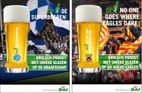ENSCHEDE - Grolsch introduceert in november speciale bierglazen van voetbalclubs De Graafschap, Go Ahead Eagles, Heracles Almelo en FC Twente.