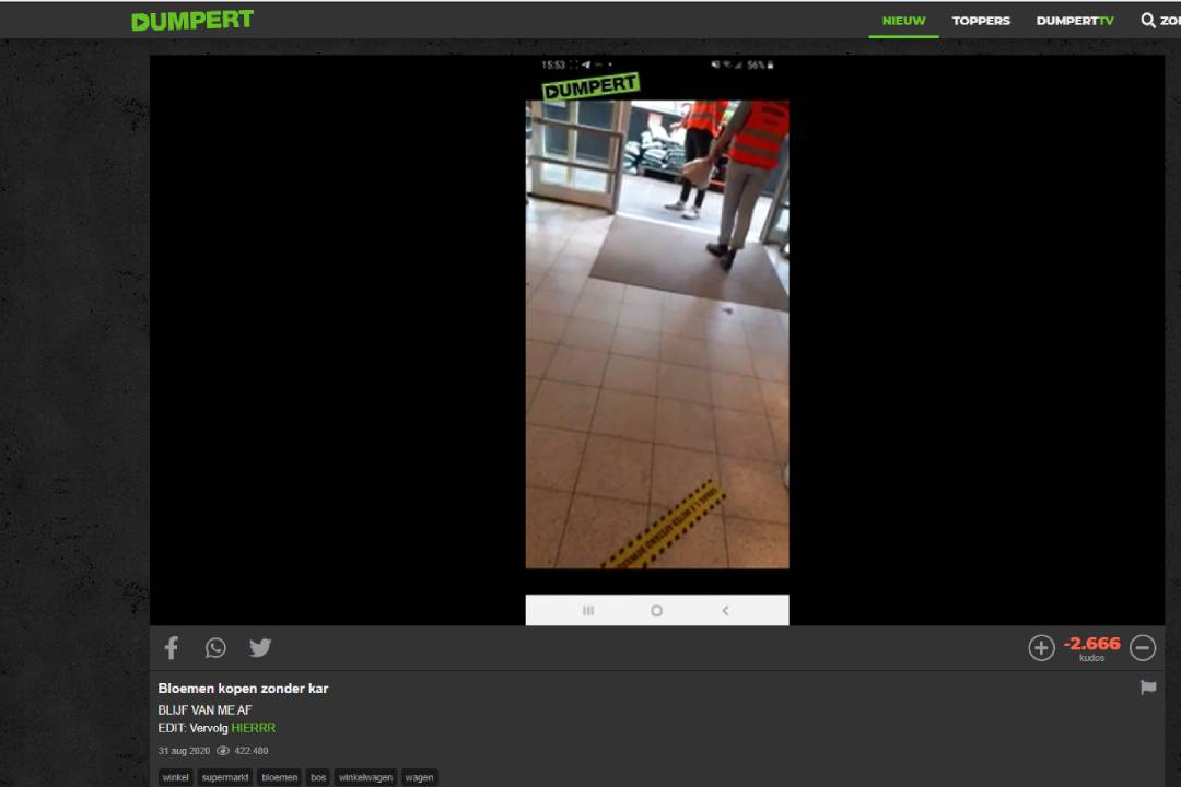 Deze week circuleert een filmpje op internet. Een man loopt een Poiesz-supermarkt binnen en koopt een bosje bloemen voor zijn bejaarde moeder. Hij neemt niet de verplichte winkelkar mee en er ontstaat discussie met personeel en klanten. Boos laat hij €10 achter voor het bosje van €8 en vertrekt.