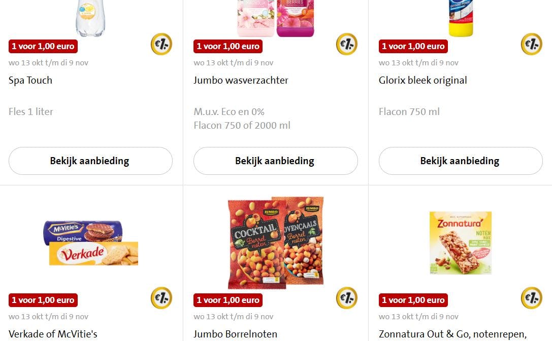 VEGHEL - Jumbo presenteert woensdag zowel online als in de winkels 100 aanbiedingen voor de prijs van €1.