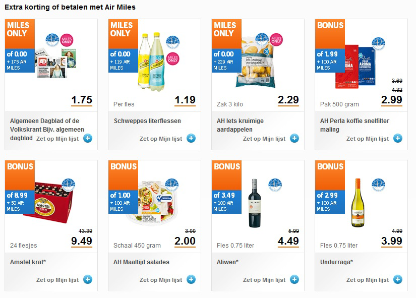 ZAANDAM - Albert Heijn biedt producten aan in ruil voor Air Miles zonder dat klanten hoeven bij te betalen. De aanbieding is een primeur voor AH.