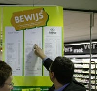 DEN HAAG - De Consumentenbond ontkent dat zij verantwoordelijk is voor de verkoop van veel merkartikelen onder de kostprijs in de supermarkten. Hierdoor staan de inkomsten van fabrikanten en landbouwers onder druk.<BR />
