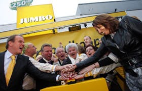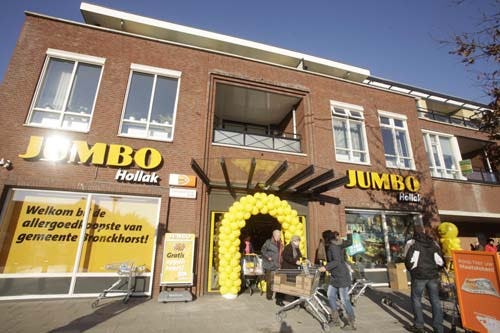 ZELHEM - De Super de Boer van vader Henk en zoon Bouke Hollak in Zelhem in de Achterhoek ging op de eerste februaridag open als Jumbo. De Hollaks wilden in de formule van de Zeven Dagelijkse Zekerheden per se de eigen elementen behouden waarmee ze in de Super de Boer-tijd succesvol waren. Ze hebben hun zin gekregen.