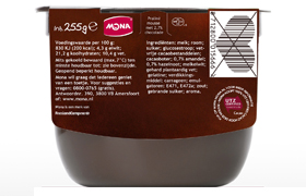 AMERSFOORT - FrieslandCampina schakelt voor het merk Mona over op duurzame cacao. Alle toetjes met chocola krijgen daarom het keurmerk van UTZ Certified.