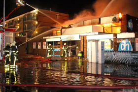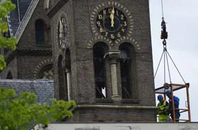 UITHOORN - Het instortingsgevaar van de Sint-Jan de Doperkerk in Uithoorn is nagenoeg geweken. Vermoedelijk kunnen de winkels, waaronder de AH van franchiser Jos van den Berg, vanmiddag rond drie uur weer open.